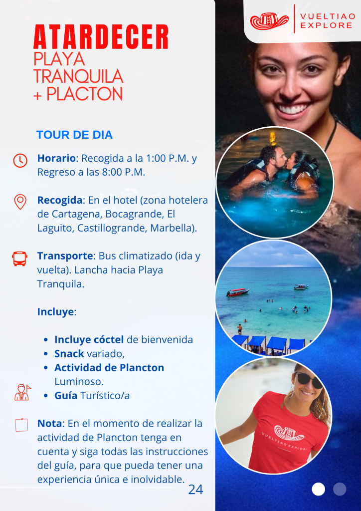 La visita a Playa Blanca fue espectacular. El agua cristalina y la tranquilidad del lugar hicieron que valiera totalmente la pena. Además, me ofrecieron la actividad de paddle board y fue una experiencia divertida y diferente. ¡Gracias, Sara, por estar siempre pendiente! Muy recomendados.