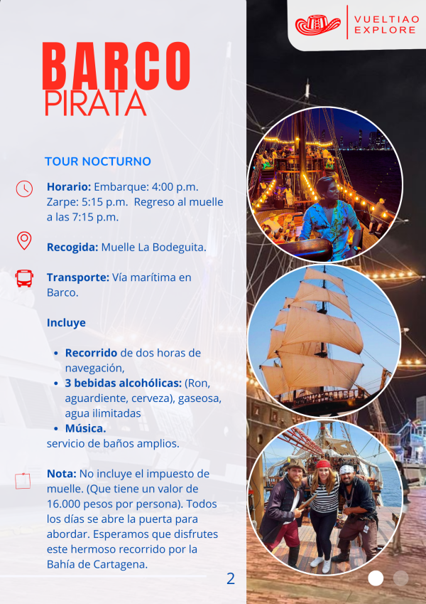 Nota: No incluye el impuesto de muelle. (Que tiene un valor de 16.000 pesos por persona). Todos los días se abre la puerta para abordar.