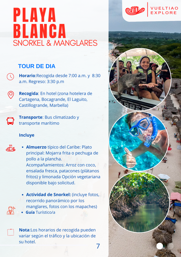 Recogida: En hotel (zona hotelera de Cartagena, Bocagrande, El Laguito, Castillogrande, Marbella)