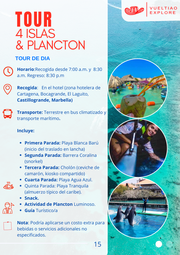 - Primera Parada: Playa Blanca Barú (inicio del traslado en lancha)
